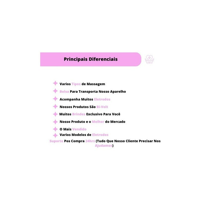 O produto possui 6 tipos de massagens, sendo elas : . Massagem clássica terapêutica . Reiki . Ayurvédica . Shiatsu . Reflexologia . Thai Seus Benefícios : • Eliminar dores nos músculos; • Relaxar; • Diminuir os níveis de Stress; • Melhorar o sono, como consequência secundaria; • Eliminar dores e/ou relaxamento nos pés; • Eliminar dores e/ou relaxamento nas articulações; • Massagear pontos do corpo sem a necessidade de forca física; • Ativar a circulação em pontos do corpo;